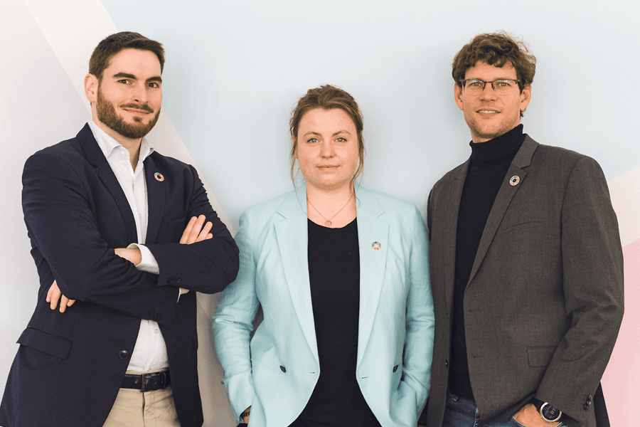 Founders: Christoph Göller (Business Development), Julia Römer (CEO), and Roland Küh (Technology Development)